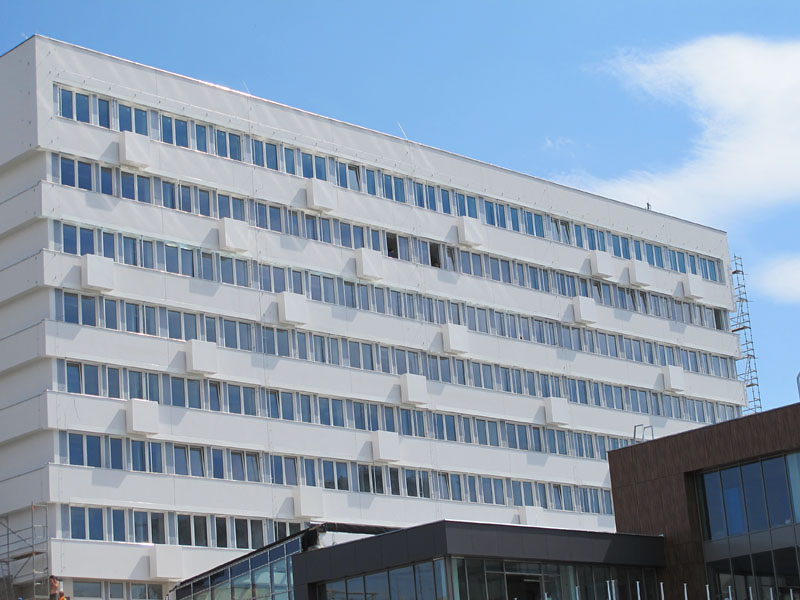 Instalace květníků na fasádě rekonstruované budovy v Praze 4 - ulici Budějovická. Zákazník: SYNER s.r.o.