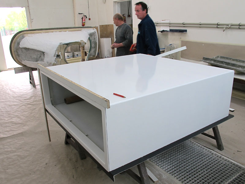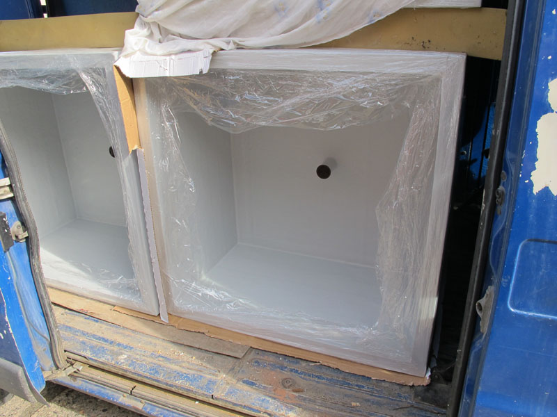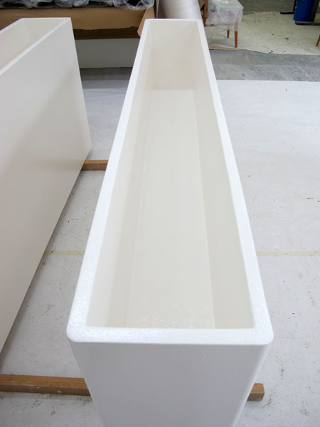 Výroba 14 ks interiérových květníků se zakulacenými rohy a dvojitým dnem pro CTPark, Brno - Černovice. Rozměry: 1700x450x840 mm a 1800x300x840 mm.