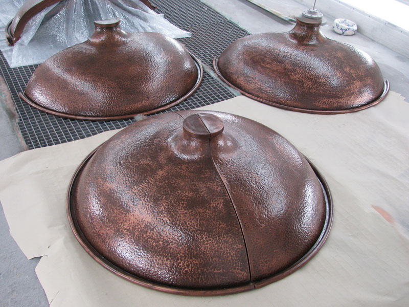 Výroba 20 ks laminátových kopulových stříšek pro výčepní stojany dle dodaného vzoru. Povrch je lakovaný s patinou imitující měděný plech. Zákazník: BEMETA DESIGN s.r.o.
