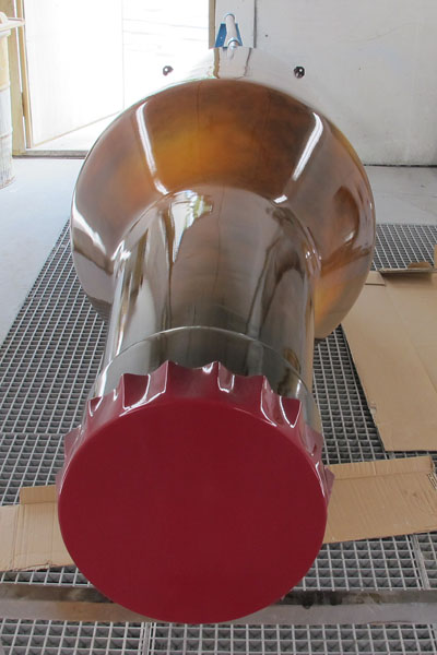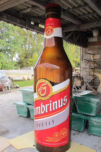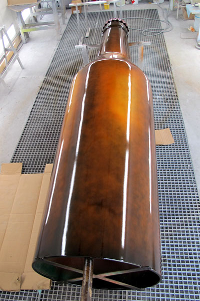 Oprava povrchu a nový lak kovové reklamní láhve. Zákazník: Plzeňský Prazdroj, a.s.