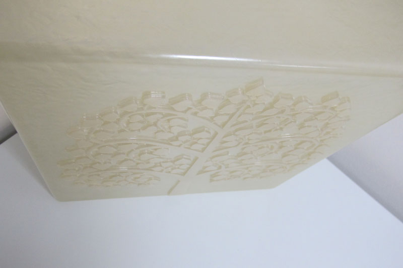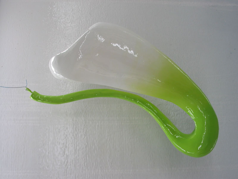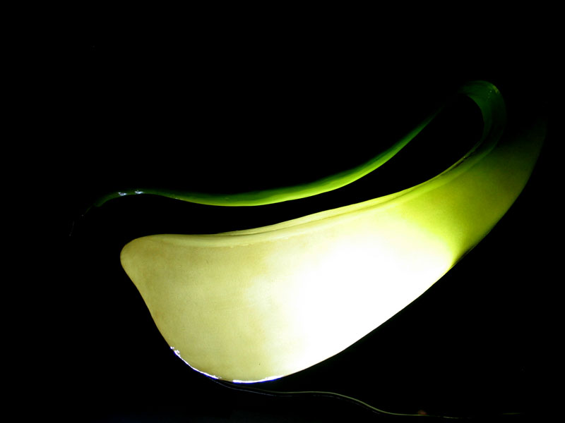Výroba formy a jednoho odlitku stínítka ve tvaru květu masožravé kytky podle dodaného hliněného modelu. Realizace je zajímavá plynulým přechodem mezi průsvitnou a neprůsvitnou částí. Autorka: Yveta Krupová. Zákazník: Matěj Bacovský.